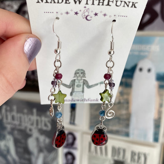 Whimsical Swirly Ladybug Earrings