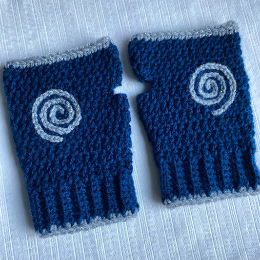 Blue and Silver Spiral Crochet Fingerless Gloves