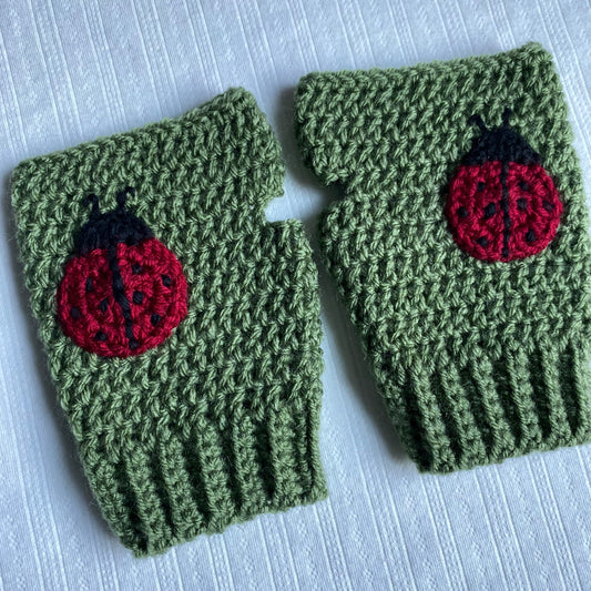 Sold outLadybug Crochet Fingerless Gloves