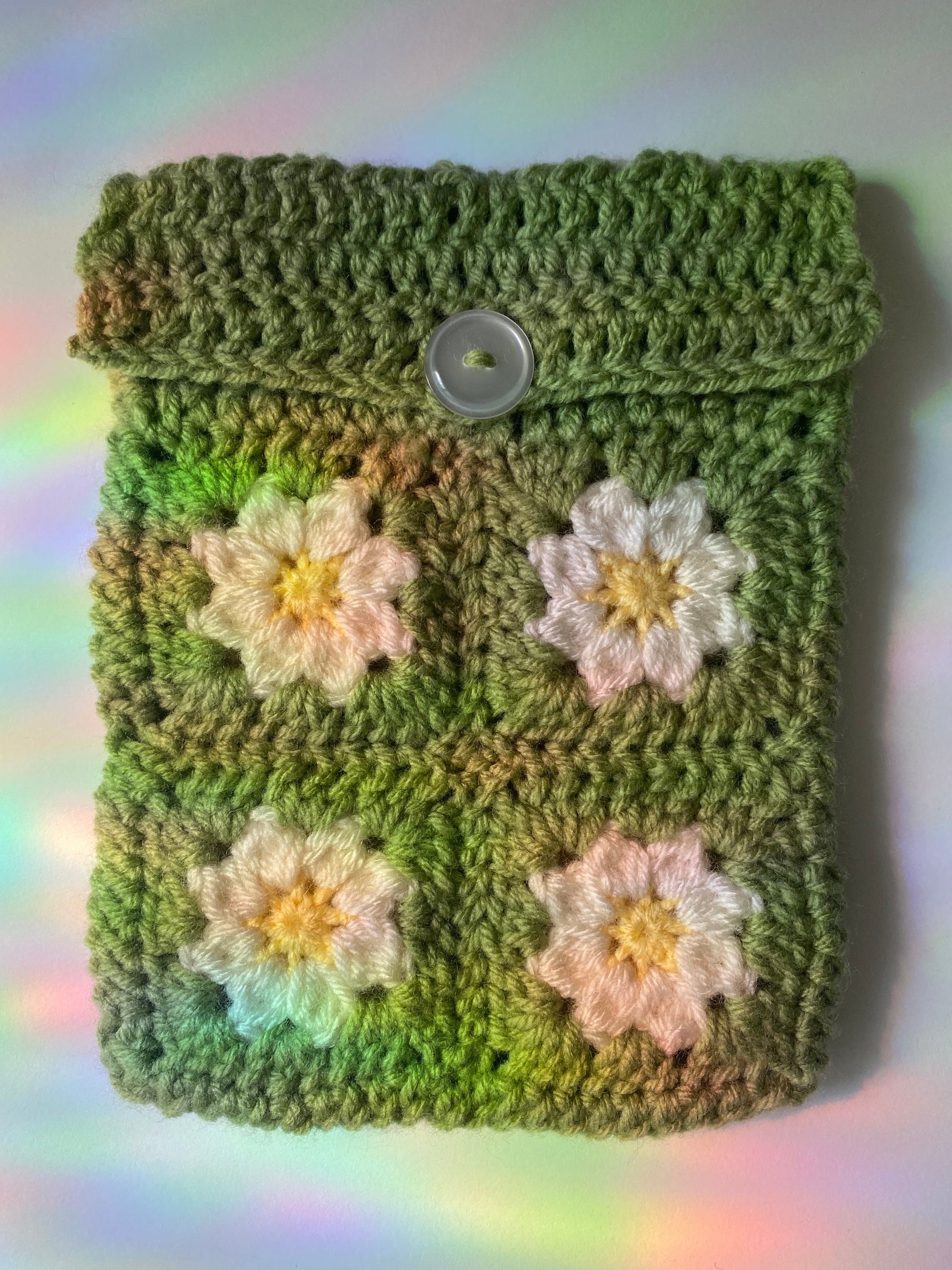 Handmade Kindle sleeve. Size of crochet sleeve: 6 inches by 7 and a half inches.