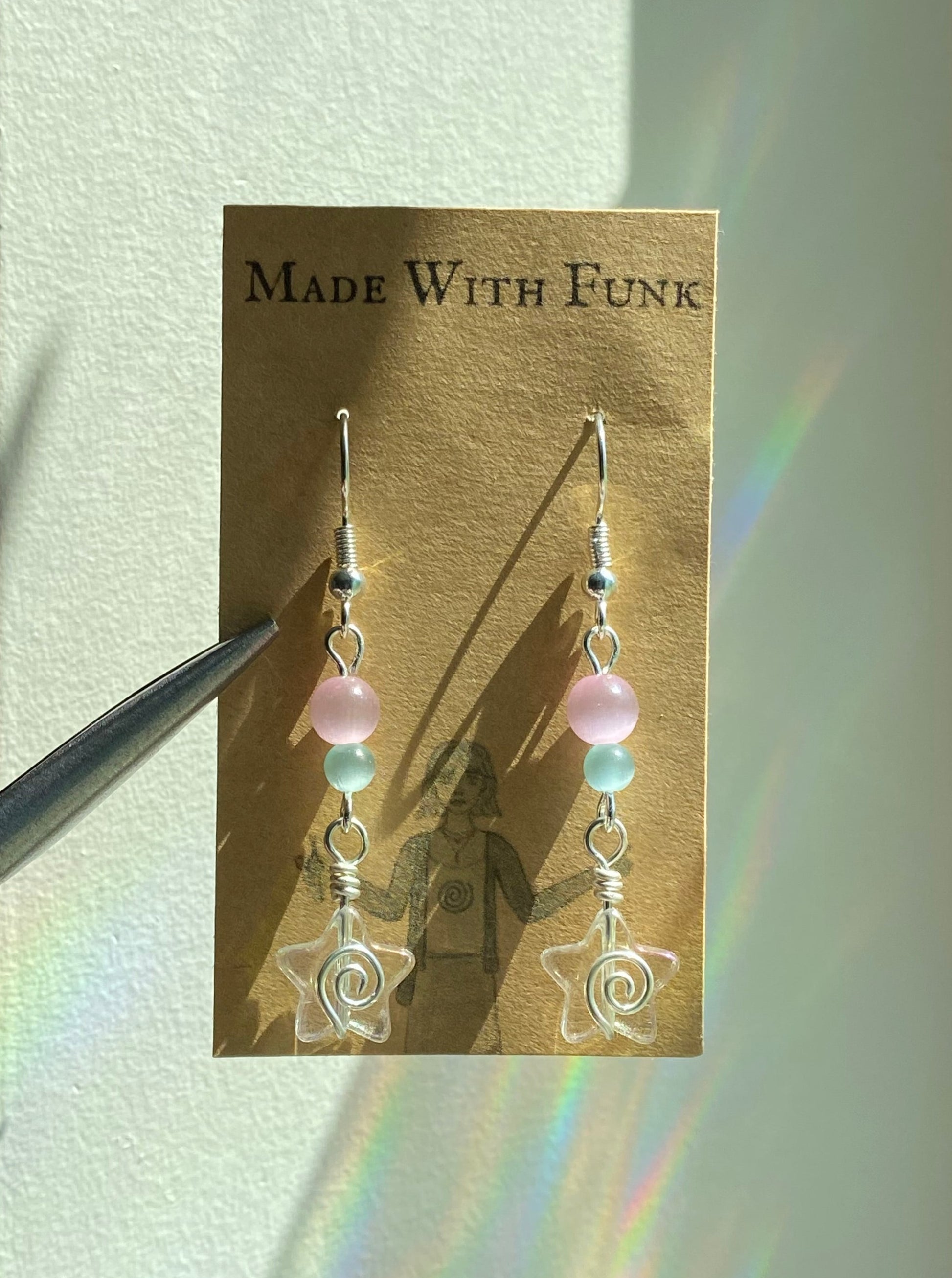 Pink/Blue Clear Iridescent Swirly Star Earrings