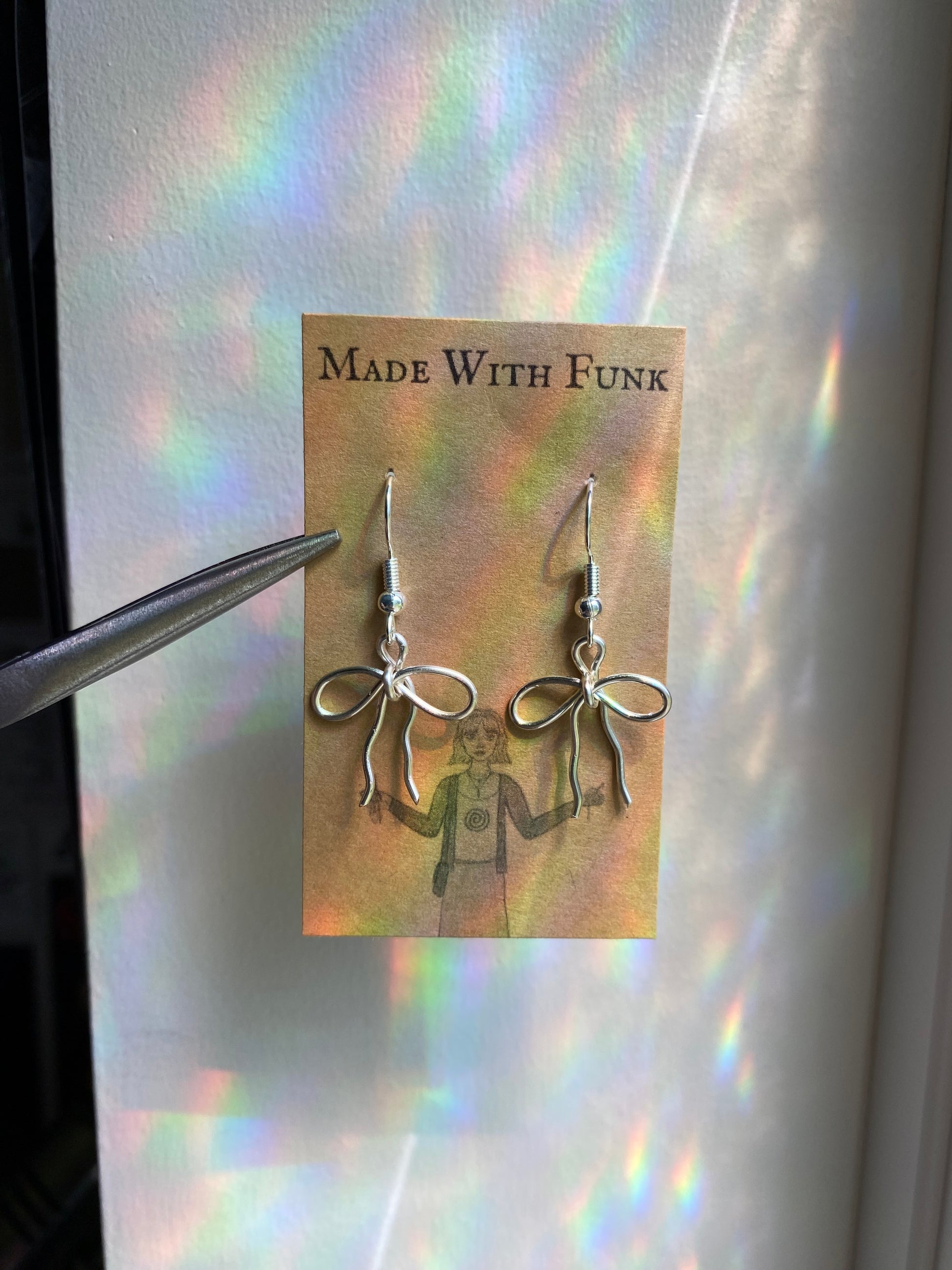 Handmade wire bows made with silver coloured, tarnish resistant wire.